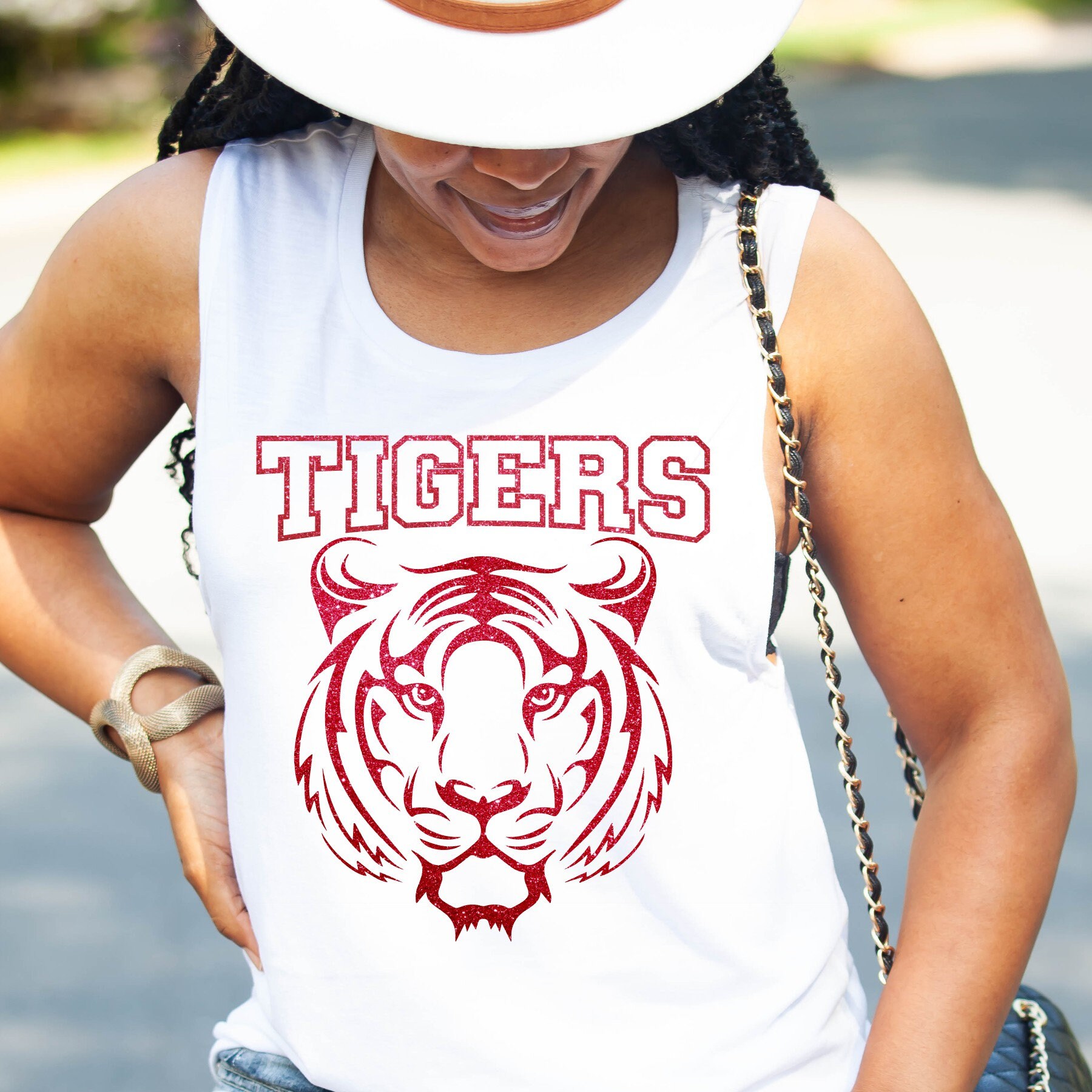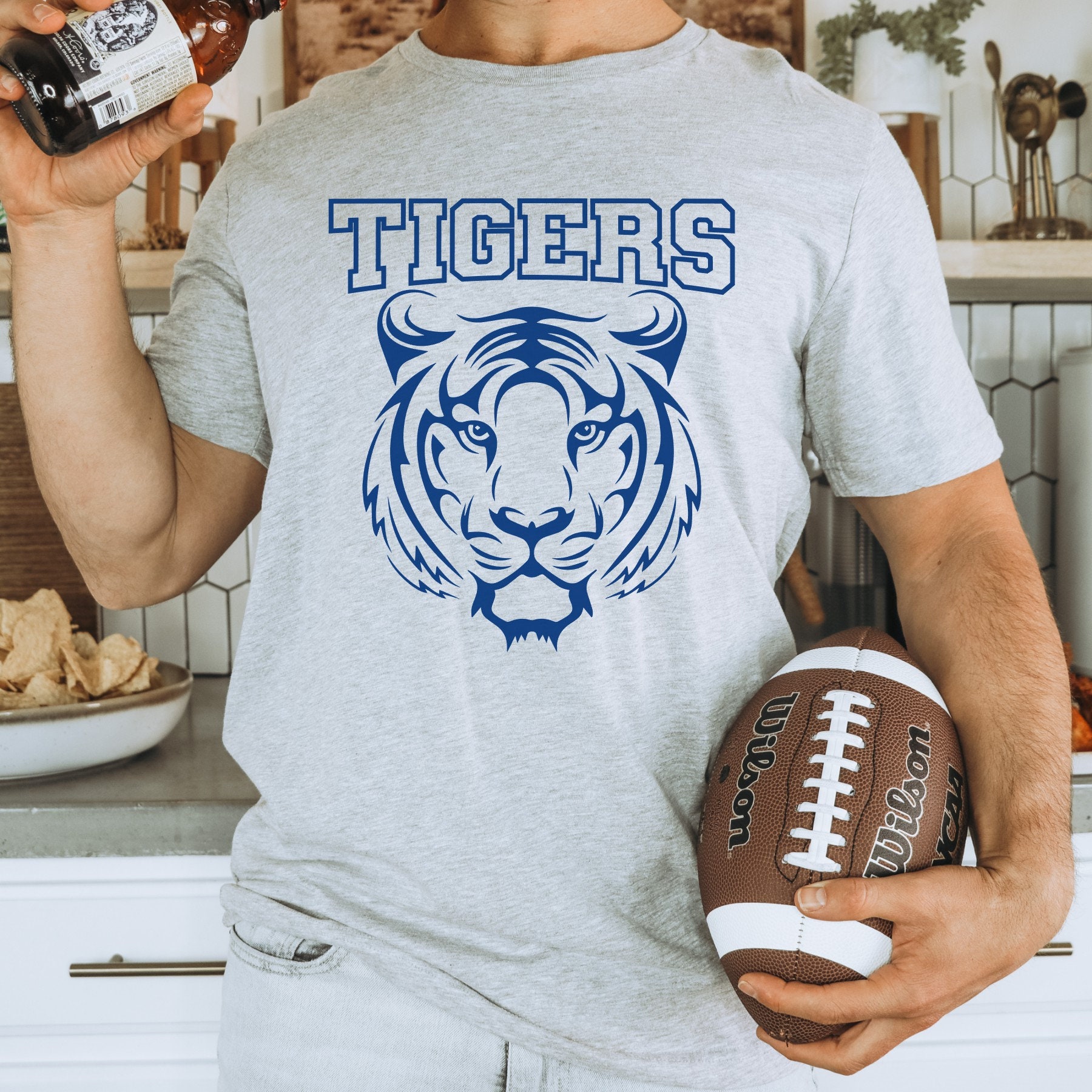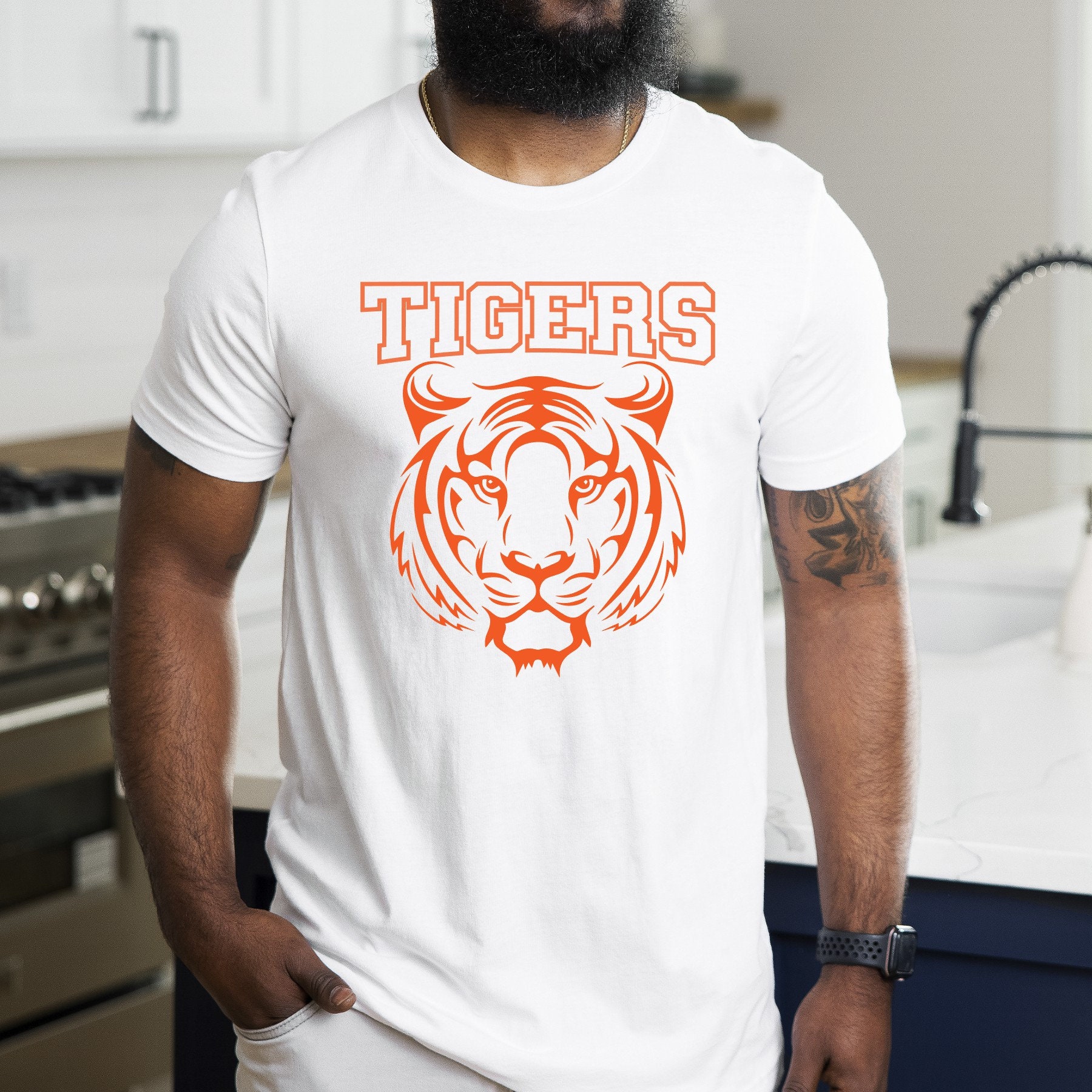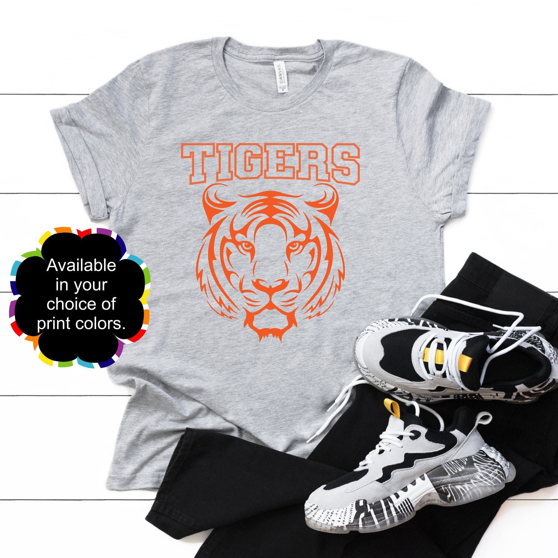 This custom Tigers mascot design looks great on Tigers fans, kid's school spirit wear, teachers, or coaches. These shirts are great gifts for your loved ones, family, coworkers, and even for yourself! You can customize the print color in the personalization section to reflect your favorite school or team.