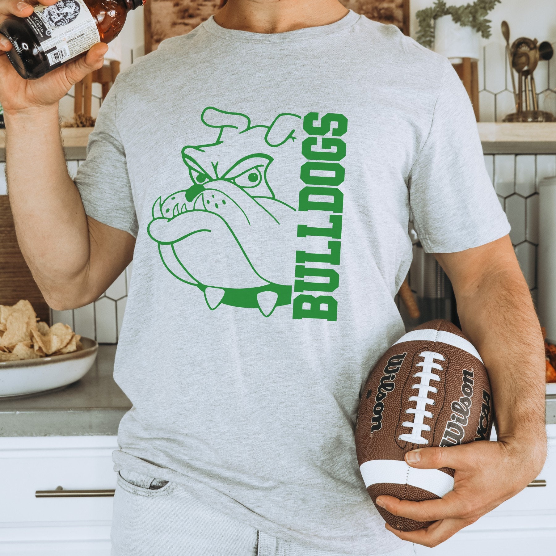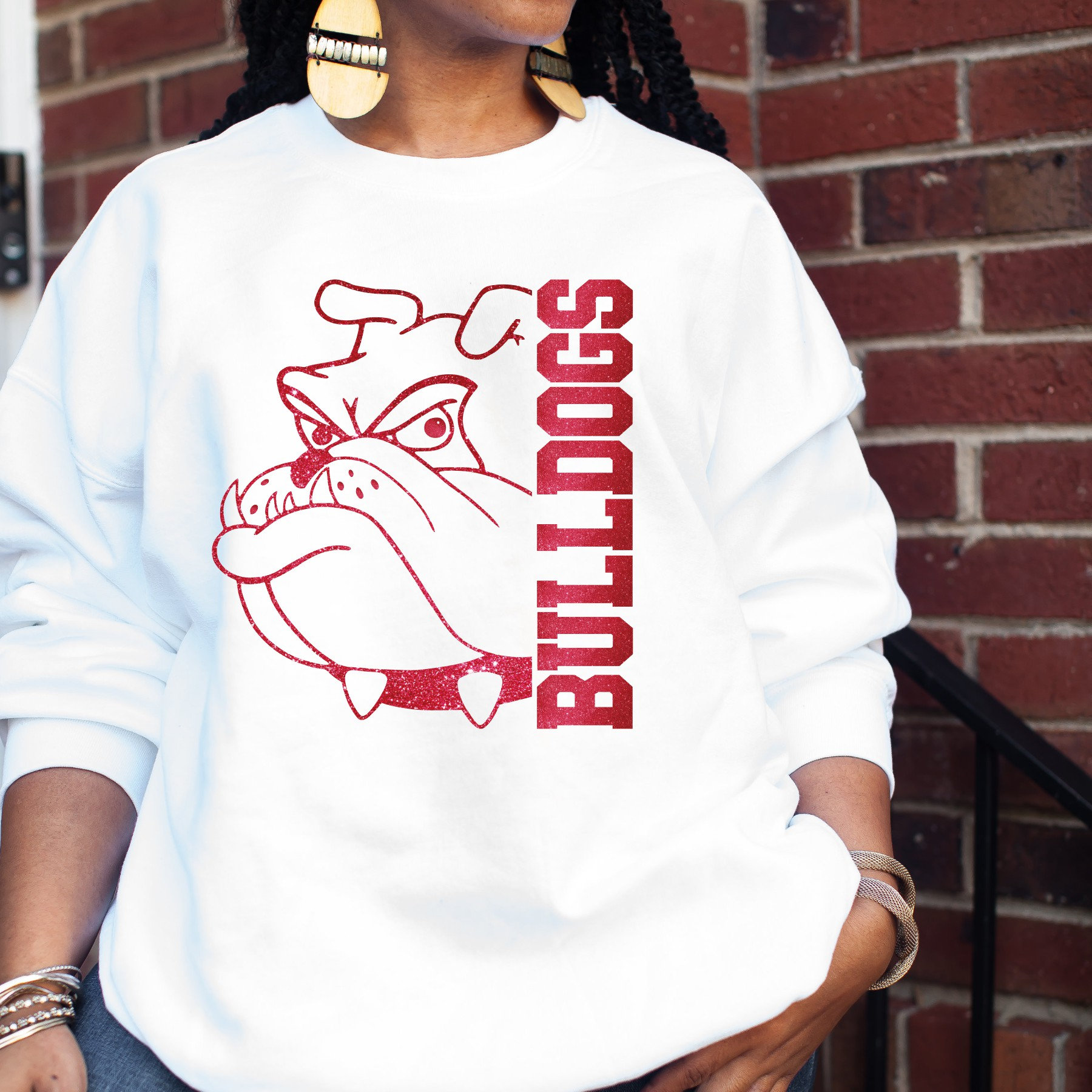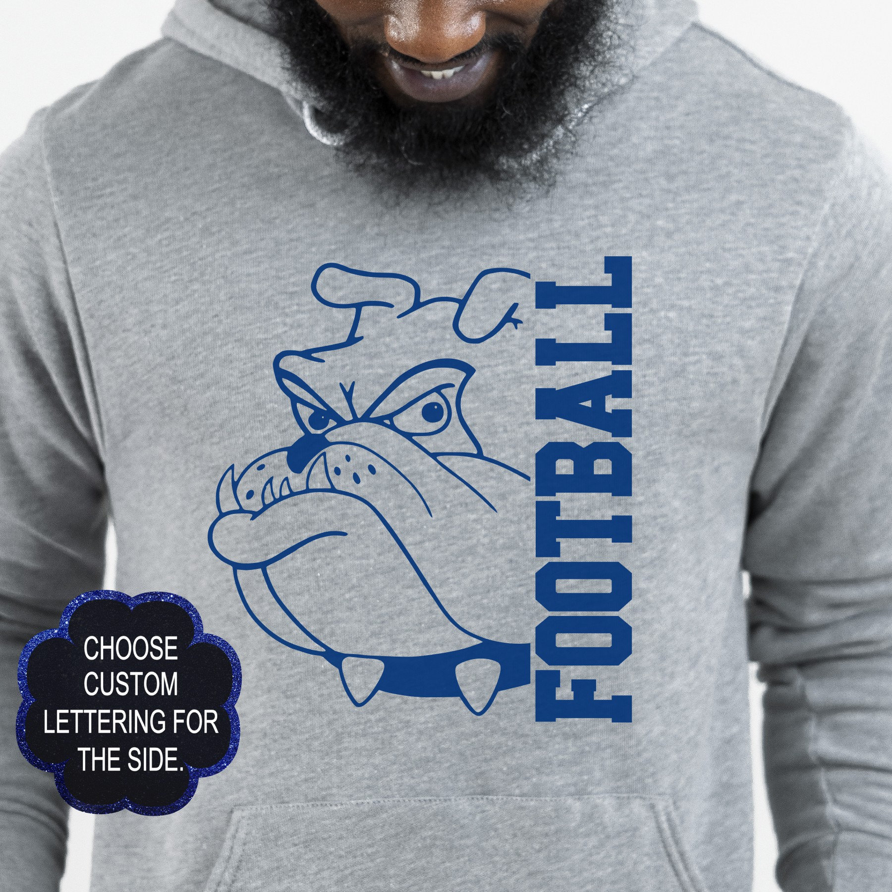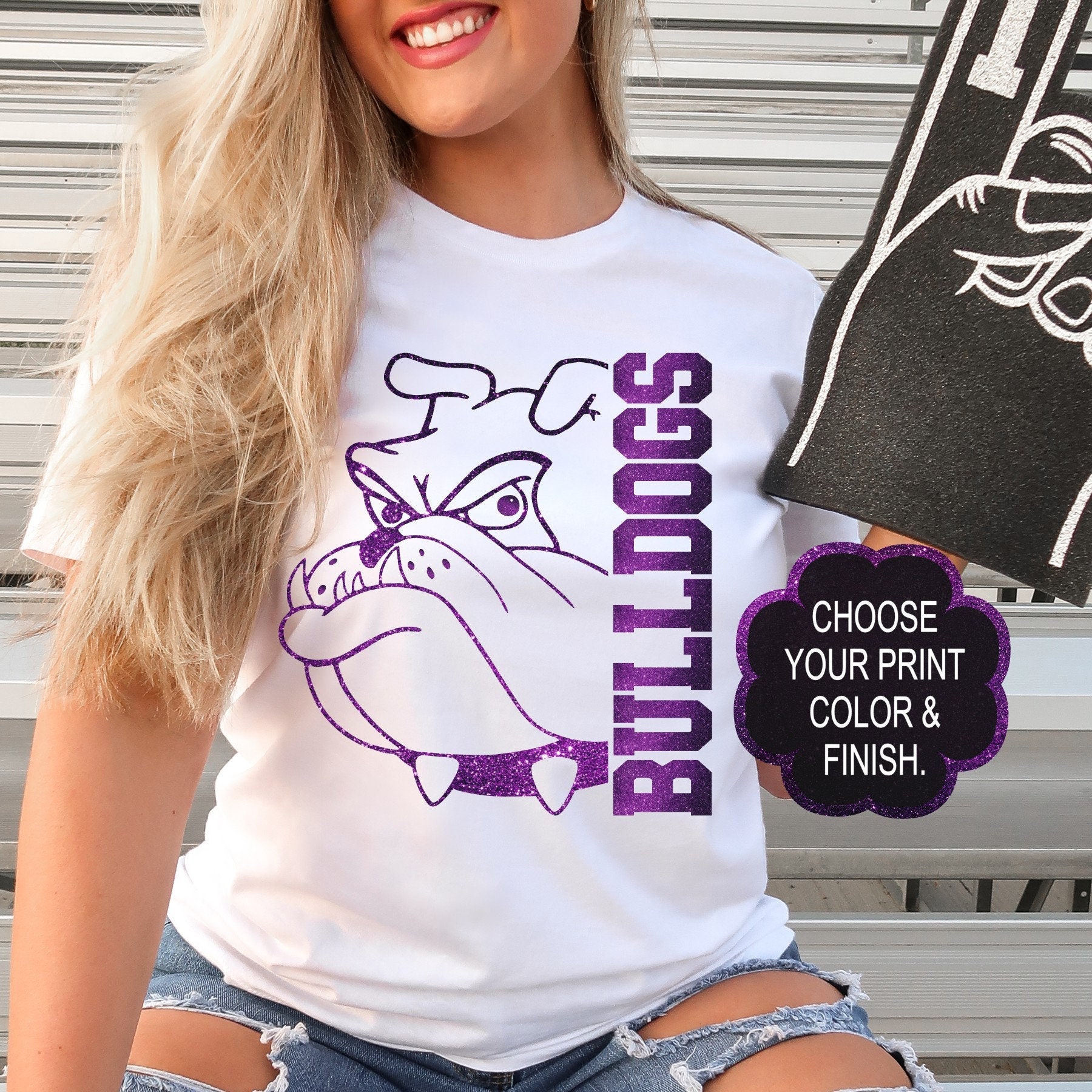 This custom Bulldogs mascot team design looks great on Bulldogs fans, as school spirit wear, on teachers, or coaches. These shirts are great gifts for your loved ones, family, coworkers, and even yourself! You can customize the lettering on the side to reflect any sport, teacher, coach, or member of the school staff.