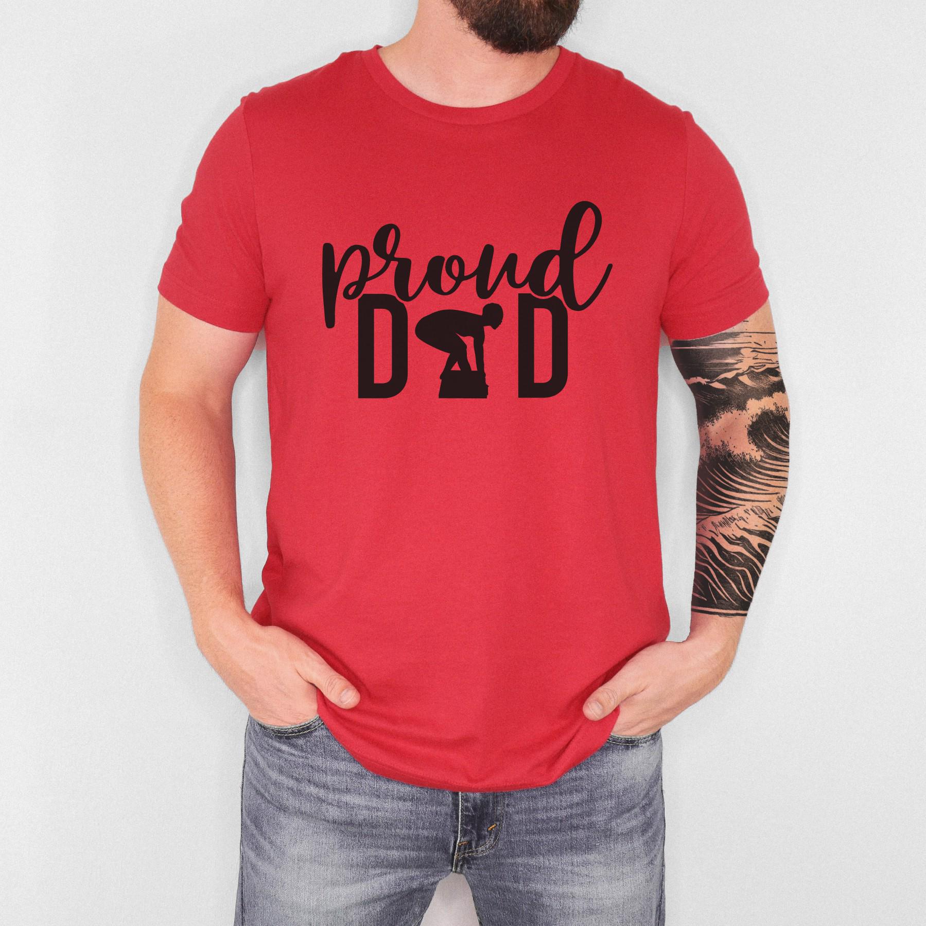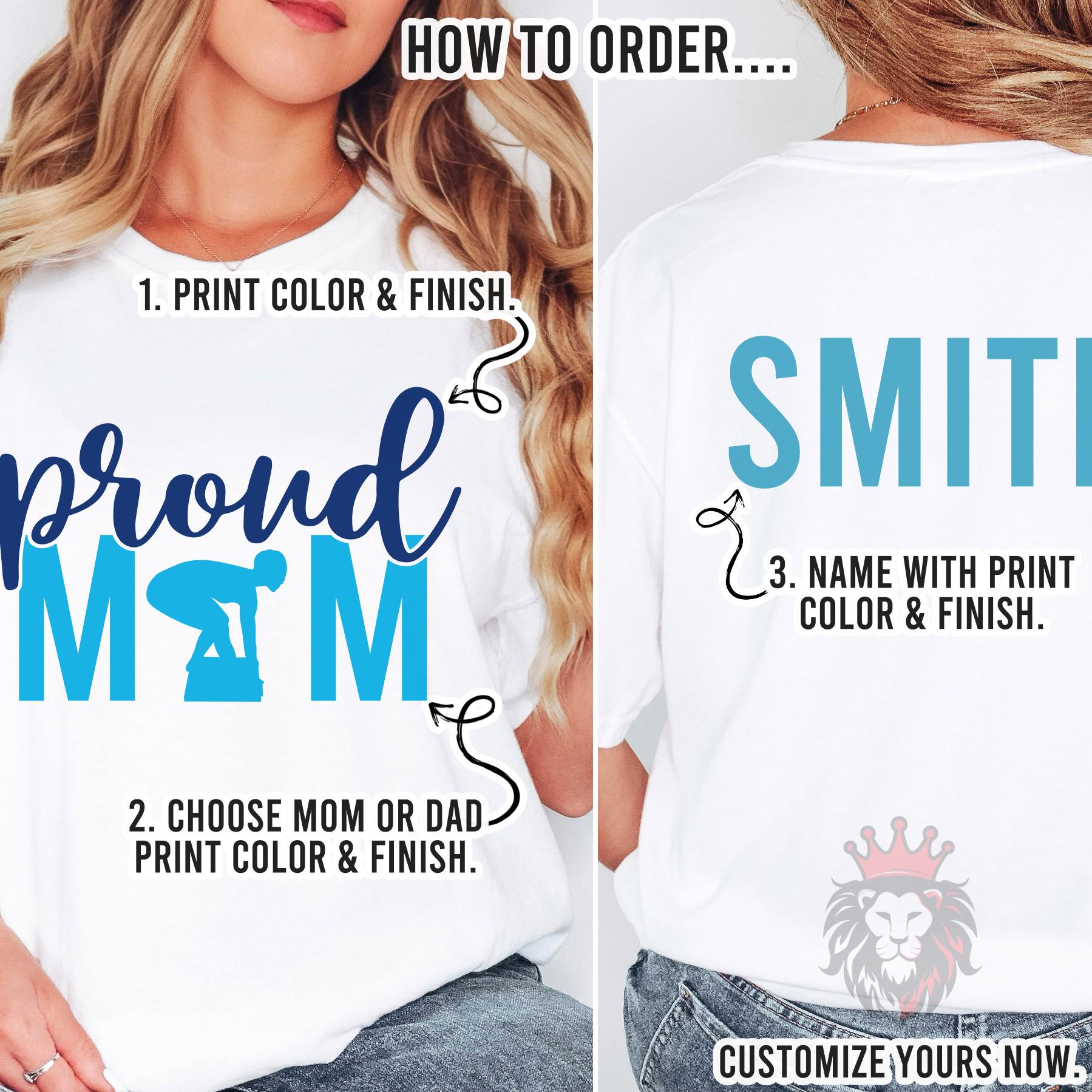 Show your swimmer or diver some love with our Proud Mom or Proud Dad swim-diver tee—now featuring a bold diving athlete silhouette and customizable team colors. Bella Canvas shirts, sweatshirts, hoodies, and Port & Company beach washed long sleeve shirts are perfect for meets, tournaments, and everyday spirit wear. Choose matte, metallic, or glitter lettering to match your team's look. Each shirt is made to order, giving swim parents a stylish way to support their athlete in and out of the water. Simply add your color choices at checkout and we’ll create a personalized design you’ll be proud to wear all season long.