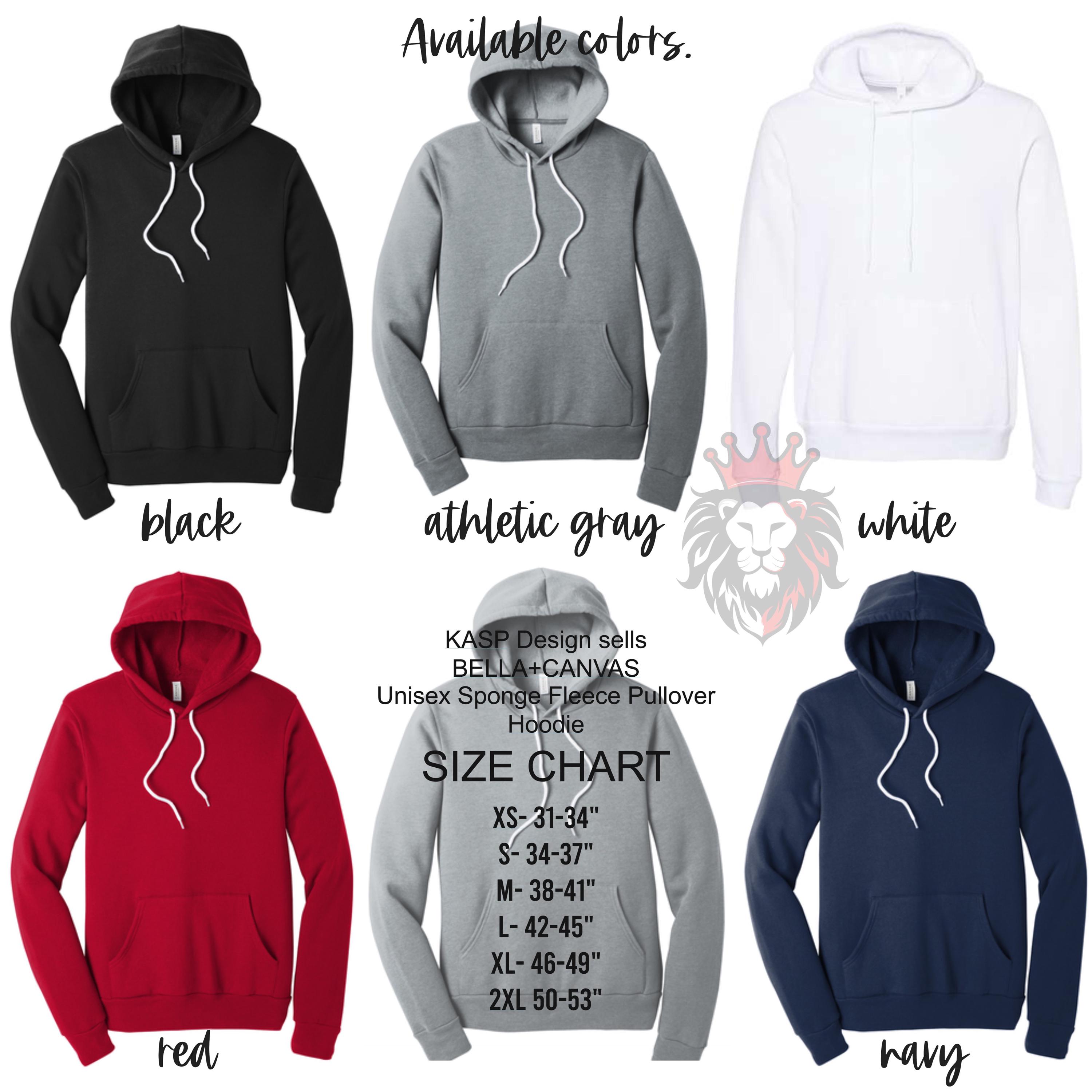 Unisex tees, sweatshirts, and hoodies are a high-quality Bella+Canvas brand. T-shirts (crew neck and v-neck), sweatshirts, and hoodies are retail fit. If you feel you are between sizes order up. The colors offered are white, black, and athletic heather (gray sweatshirts being the exception- they are deep heather gray).
