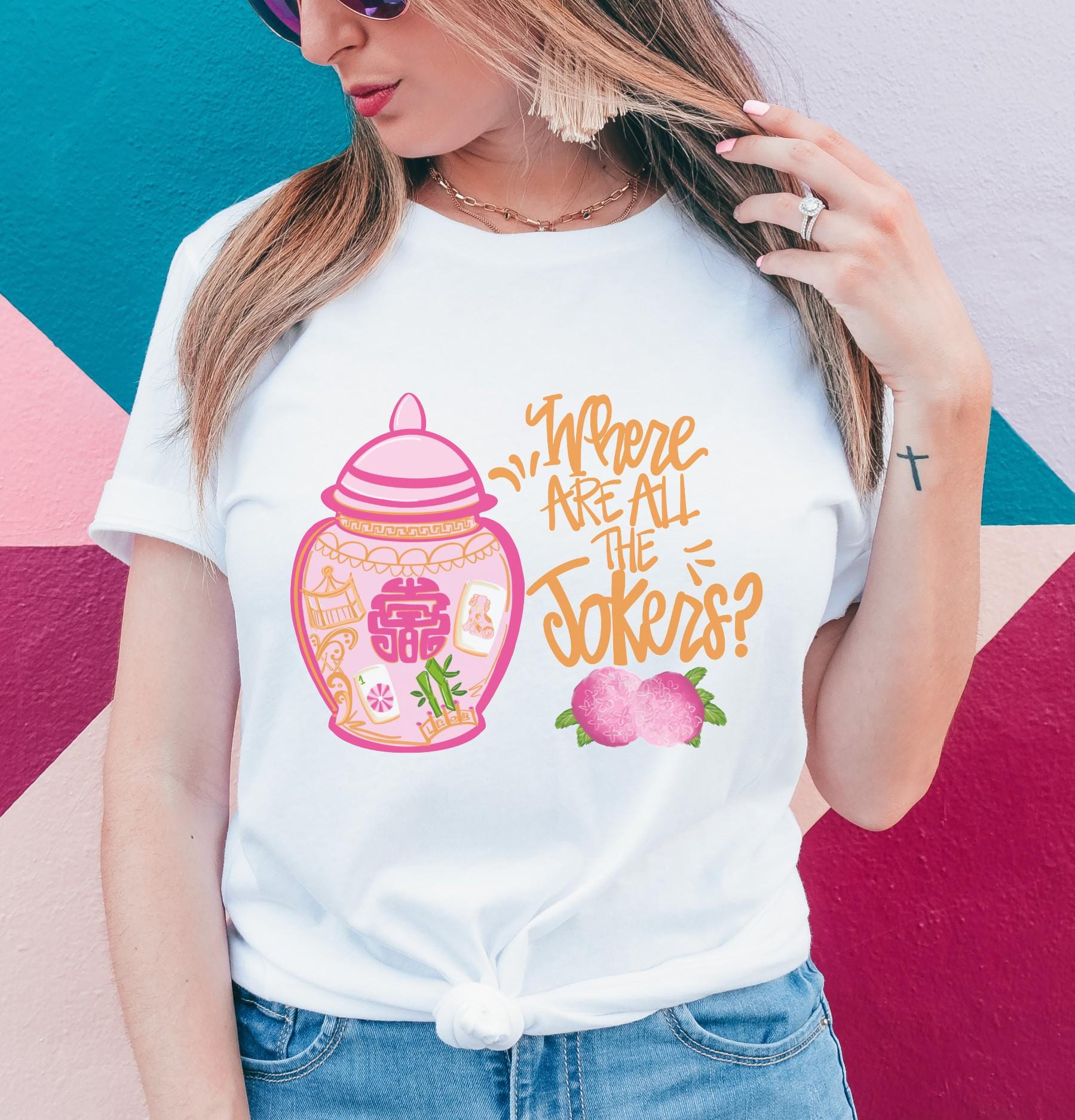 “Where Are All The Jokers?” is the ultimate inside joke for serious Mahjong players. This vibrant, playful design features colorful tile-inspired artwork and bold lettering that stands out at league night, tournaments, or girls’ game trips.