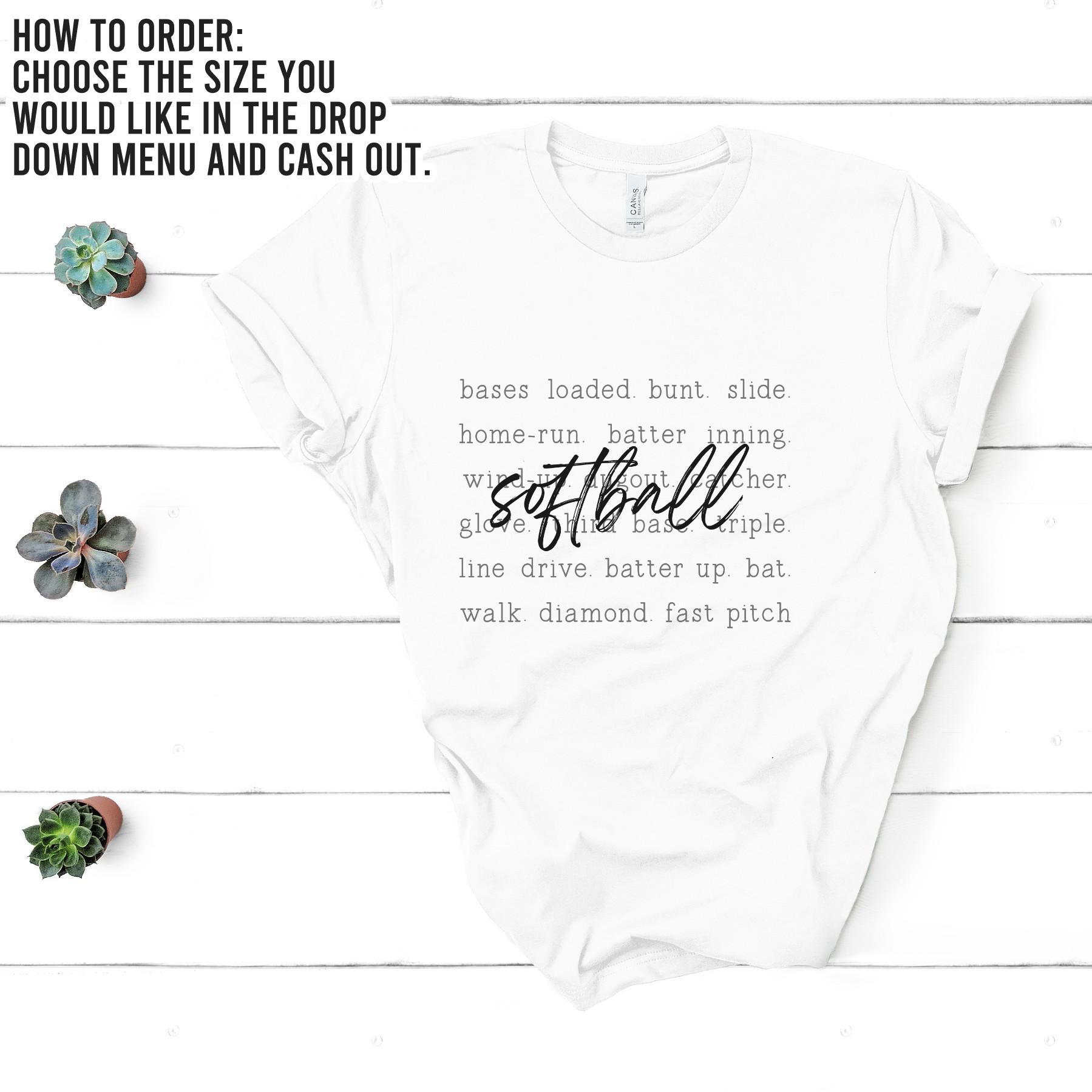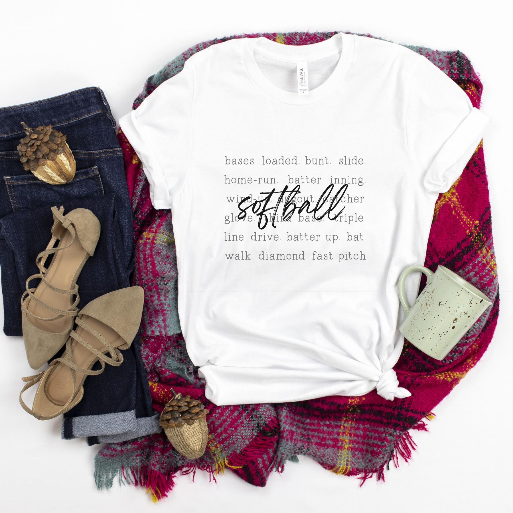 Show your love for the game with this softball word art design featuring classic phrases every player and fan knows. Words like bases loaded, bunt, slide, home run, and fast pitch create a subtle background, while “softball” stands boldly across the center.