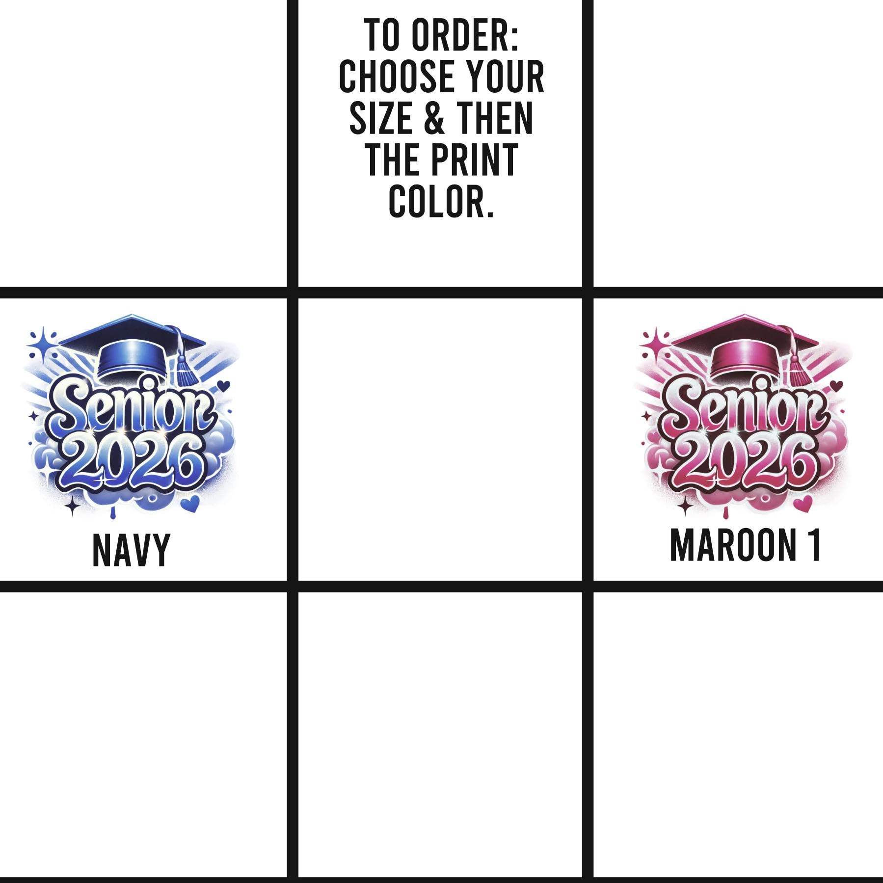 1. Select the size and print color you would like.