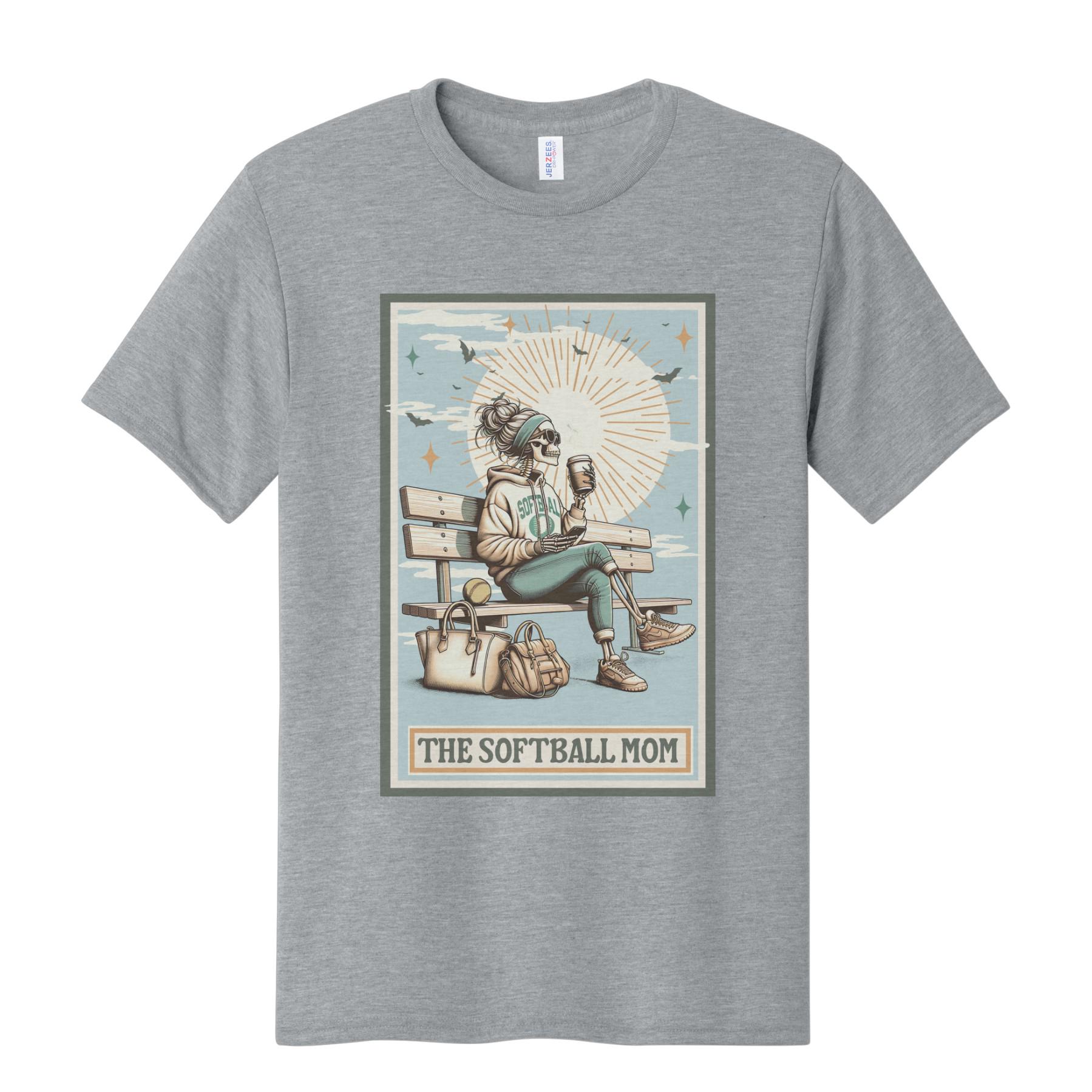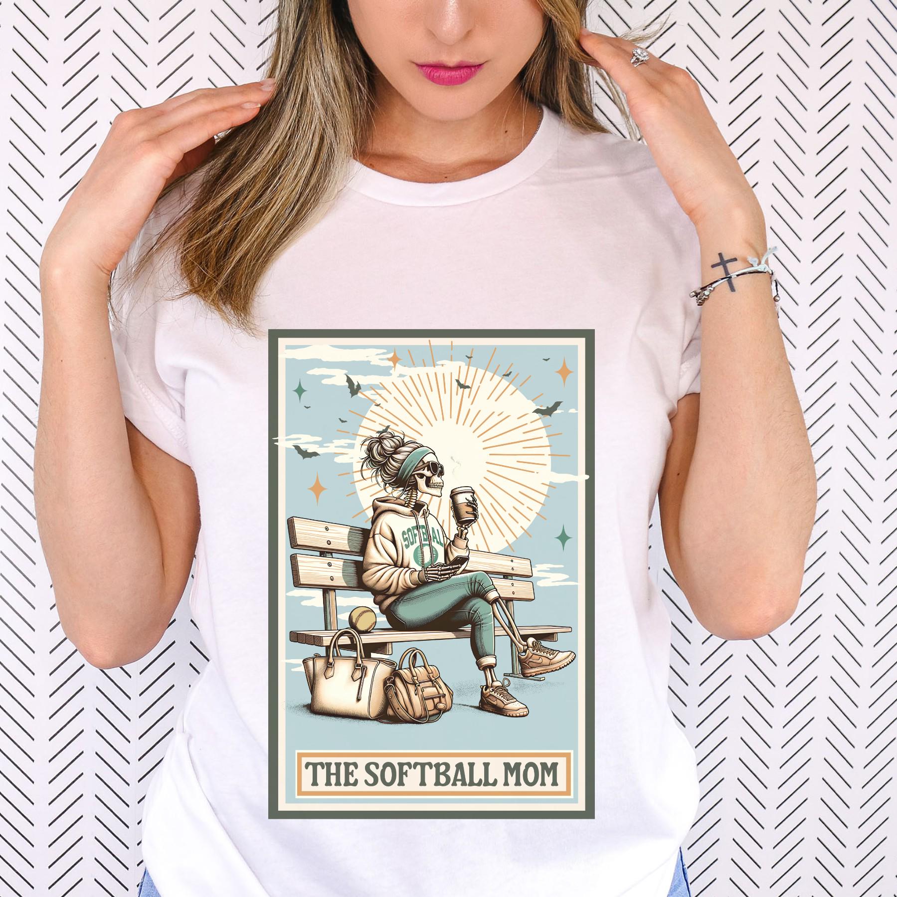 Softball Mom Shirt Tarot Style Skeleton Bleachers Coffee Sports Mom Graphic Tee