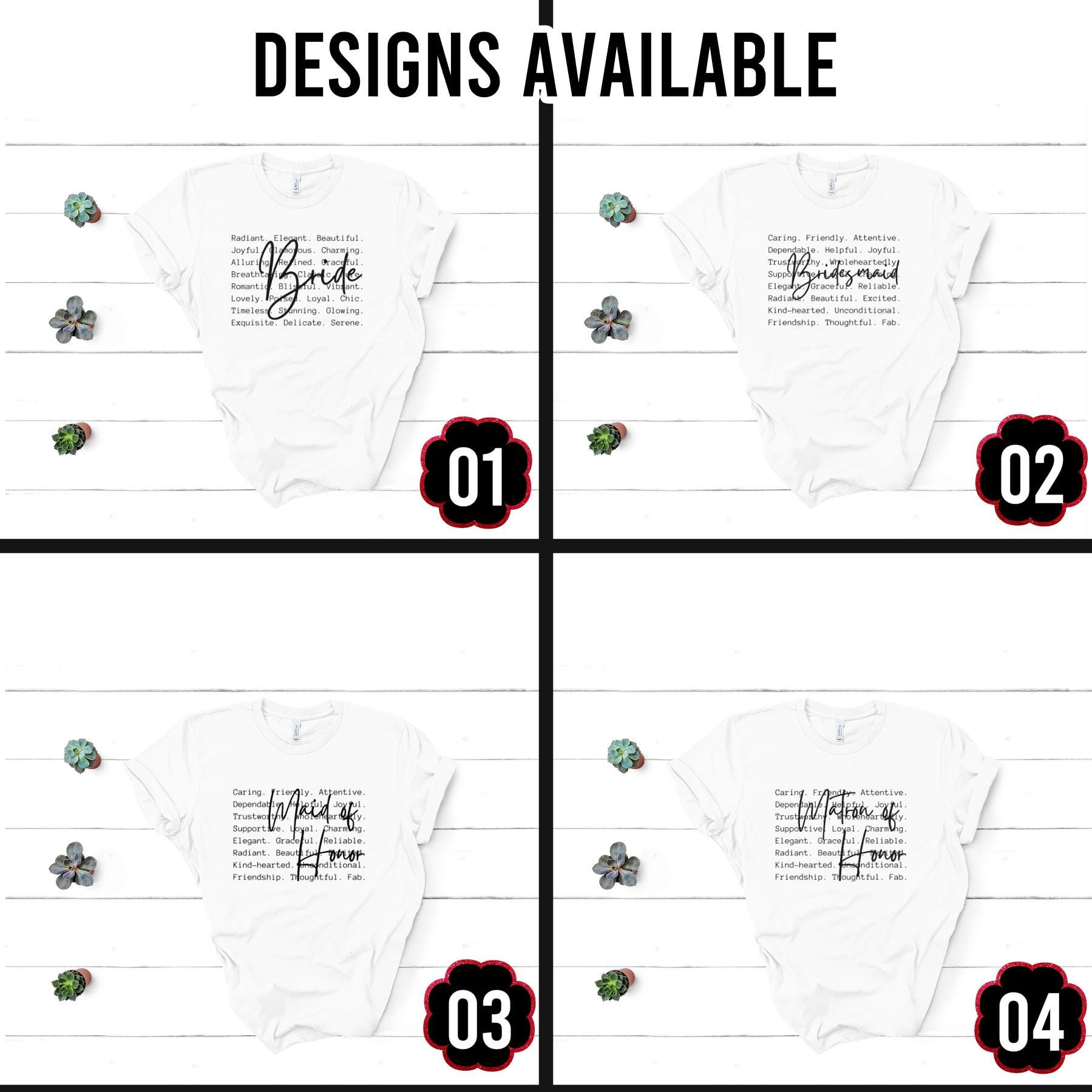 Bridal Party Shirts Bride Bridesmaid Maid Matron Honor Matching Tees