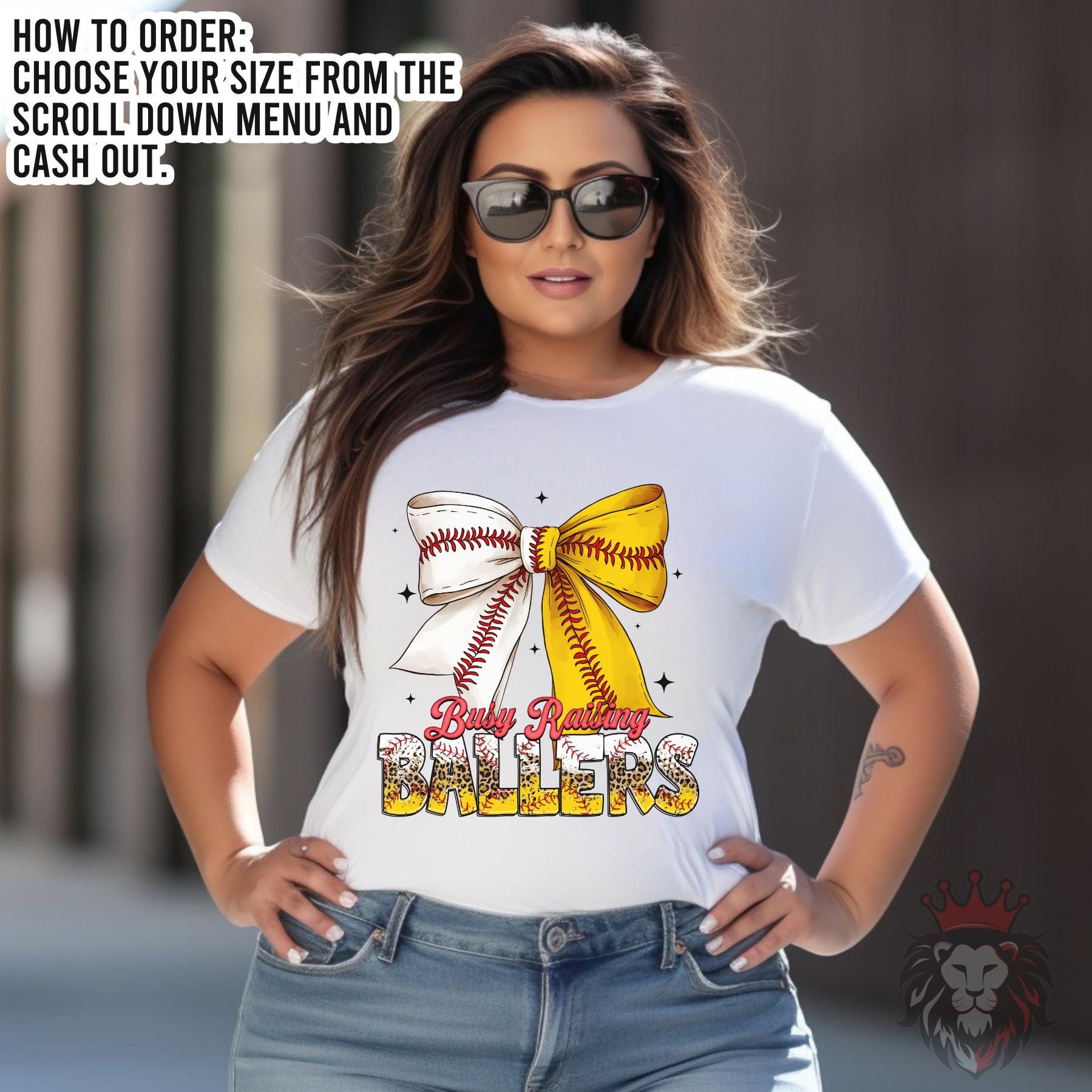 Busy Raising Ballers Shirt, Bow Baseball Mom Trend Tee